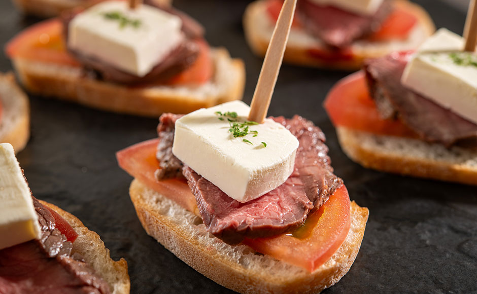 ・Pinchos with corned beef and Hokkaido cream cheese