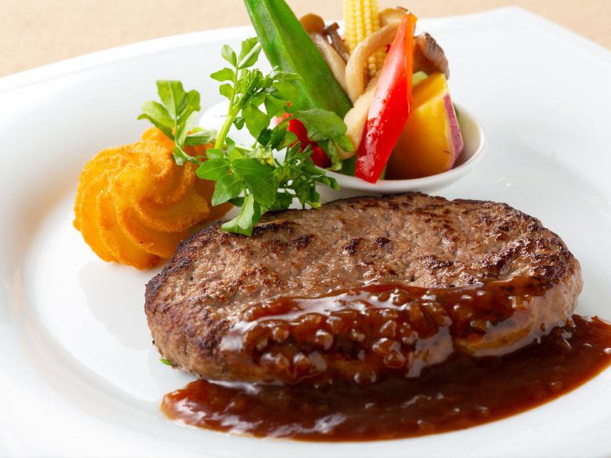 サラダ/コーンクリームスープ/ハンバーグ/ライス/デザート