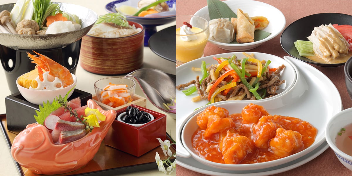 上記料金で、温泉1回入浴と和食「四季彩膳」(\3,300)または「中華セットメニュー」がお召し上がりいただけるお得なプラン。