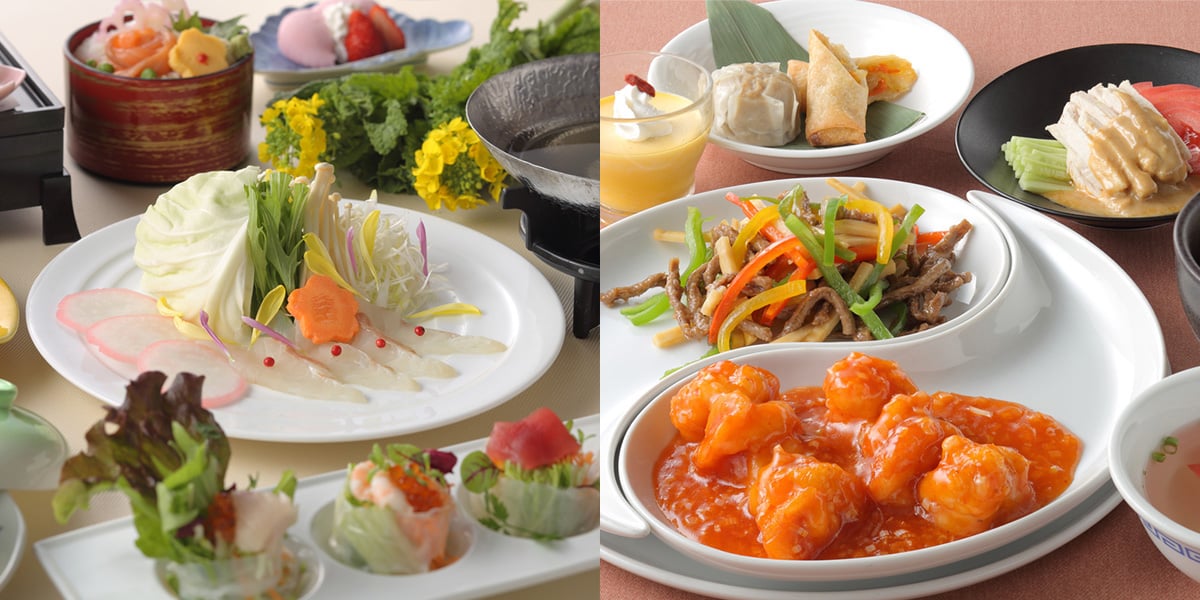 上記料金で、温泉1回入浴と和食「四季彩膳」(\3,300)または「中華セットメニュー」がお召し上がりいただけるお得なプラン。