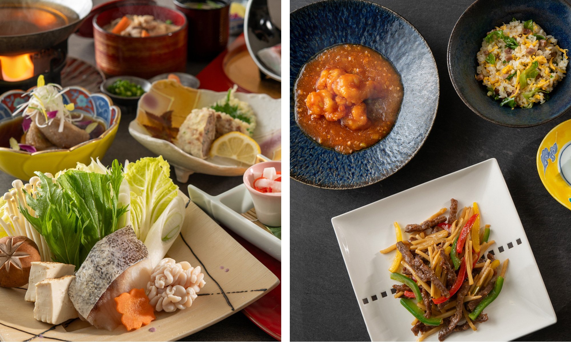 上記料金で、温泉1回入浴と和食「四季彩」(定価¥4,500)または中国料理「中華セットメニュー」(定価¥4,500)がお召し上がりいただけるお得なプラン。