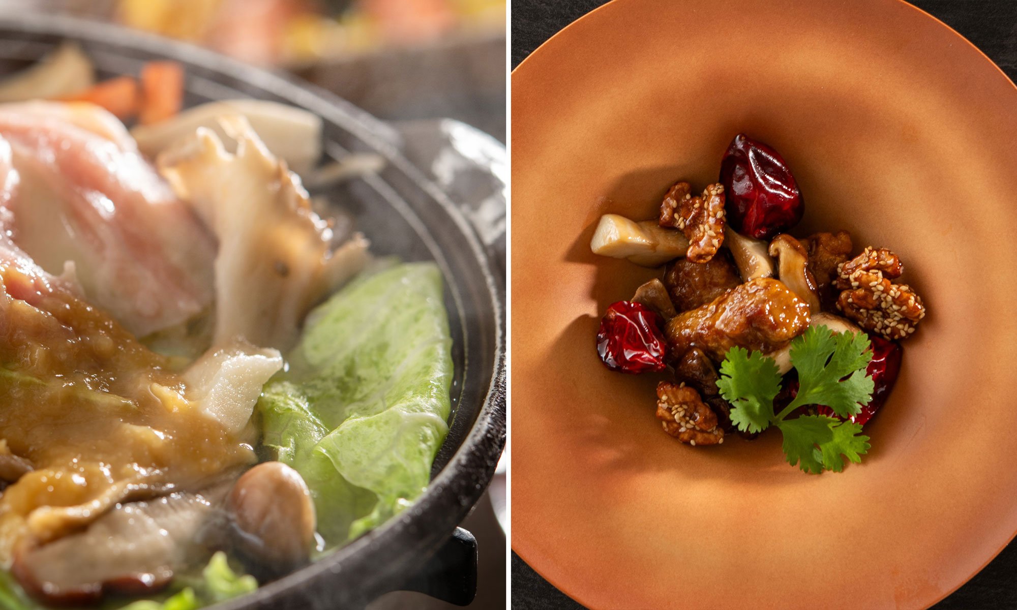 ・千葉県産「ロイヤル三元豚」と茸、胡桃の四川唐辛子炒め