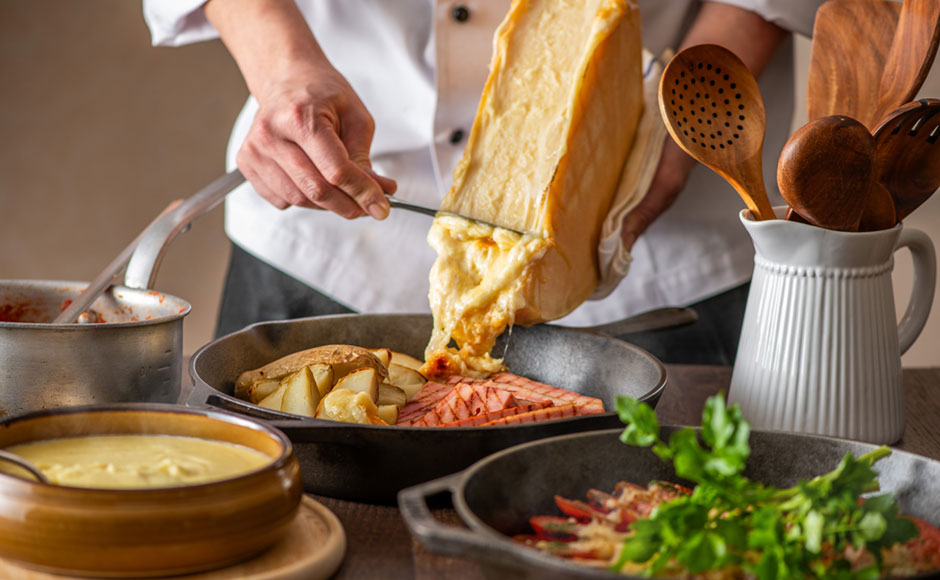 ベーコンとじゃがいもにまろやかで味わい深いとろけるチーズをたっぷりと。スイスの伝統料理をご堪能ください。