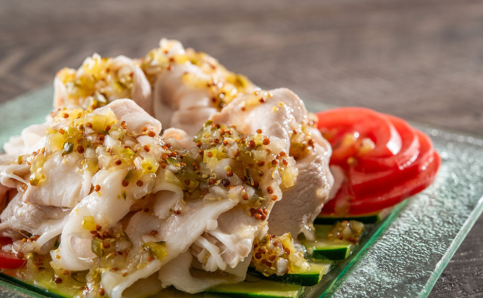 ・豚バラ肉のスパイス焼き ヴィネガーと蜂蜜のソース